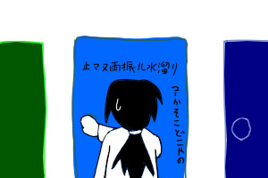 どのドアを選んでも同じであろうと、とりあえず青のドアのドアノブを握った